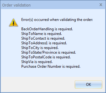 You will be notified if there are any validation issues with the order: