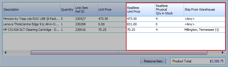 For each line item, this column will contain a list of Ingram Micro physical warehouses and the quantity in stock of this item in each of the physical warehouses. You cannot, however, select a specific warehouse to ship from when submitting orders to Ingram Micro.