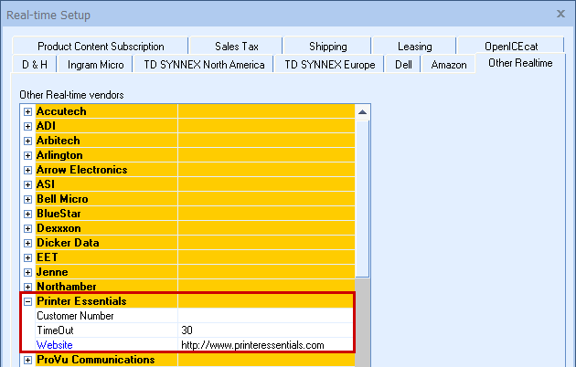 The Printer Essentials Real-Time Pricing & Availability is only available in the USA. Before you can setup and use the Printer Essentials Real-Time Pricing & Availability features, you need to contact your Printer Essentials sales rep to obtain a Printer Essentials Customer Number.
