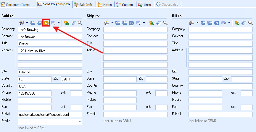 Select the Sold to / Ship to Tab in QuoteWerks: