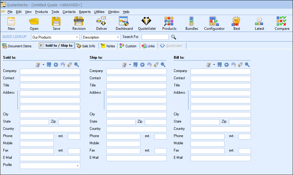 Select the Sold to / Ship to Tab in QuoteWerks, then click on the