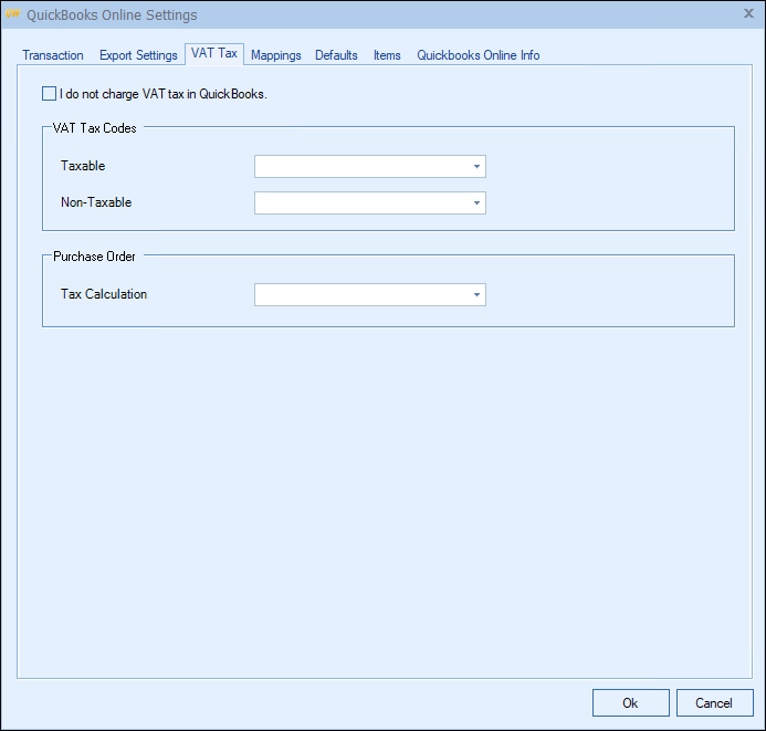 If this option is set, the setting will be used when exporting POs to QuickBooks Online. If it is left blank, this setting will be ignored. You can choose between the selections of "Not Applicable", "TaxExcluded", or "TaxInclusive".