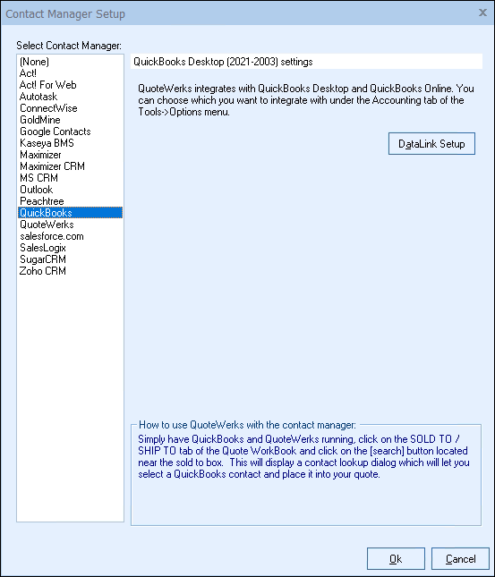 This section will take you through the steps of integrating your QuickBooks contact database with QuoteWerks.