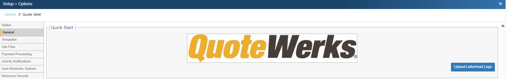 Quick Start allows you to quickly upload your logo to the default QuoteValet templates to start using QuoteValet immediately without any customization.