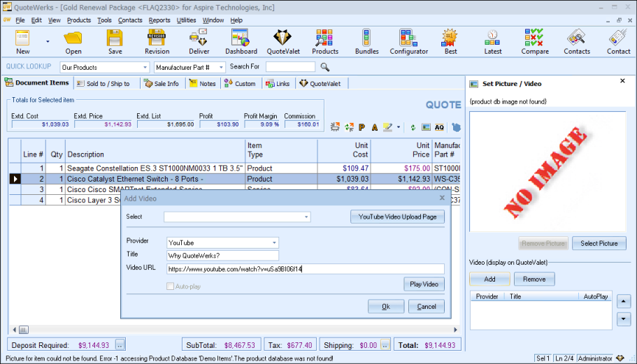 To add a video to a line item on an existing document in QuoteWerks, follow these instructions:
