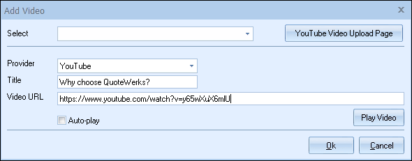 4. If you would like to upload a new video to YouTube to use in your document, you can click on the [YouTube Video to Upload Page] button and QuoteWerks will open your YouTube account so you can upload a new video.