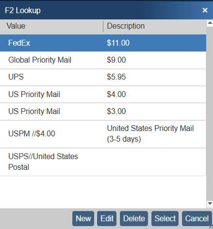 Note: See F2 Lookup List Feature for more information. |