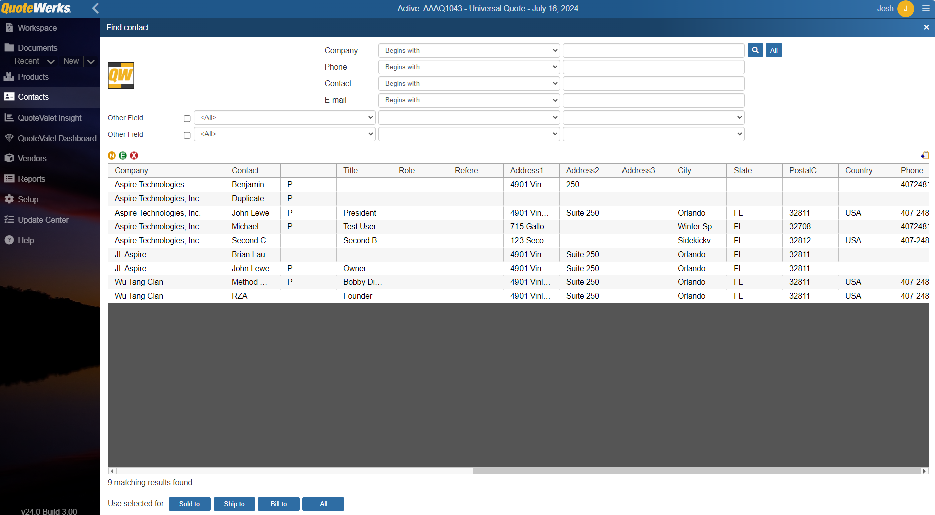 Users must have a document open in QuoteWerks Web before a contact can be added to it. Once the contact has been found and added to the document, a confirmation message will display in the bottom right-hand corner of QuoteWerks Web confirming the contact was added.