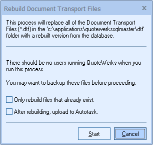 License Key information is branded into DTF files for security reasons (so that only installations of QuoteWerks with the same License Key serial number can share documents), so when you upgrade between QuoteWerks product editions, do a license relinquishment, or remove a Remote PC/Site license, you need to rebuild the DTF files to recreate them to be branded with the primary License Key.