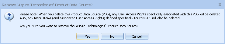 Step 2: Once you click on the [Remove] button you will be prompted to confirm your decision to remove the product database link: