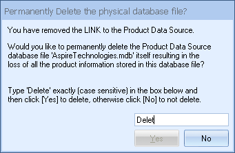 Step 3: In addition to removing the link, QuoteWerks will prompt you and ask if you want to delete the physical product database:
