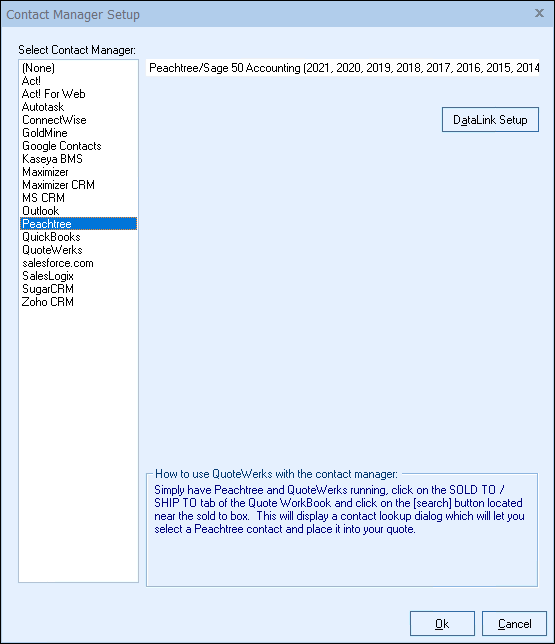This section will take you through the steps of integrating your Sage 50 (Peachtree) contact database with QuoteWerks.