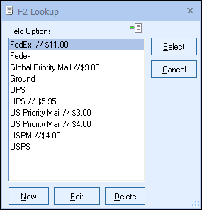 The Ship Via field stores the quote’s shipping method. Double-click within the field, press the [F2] key on your keyboard, or click