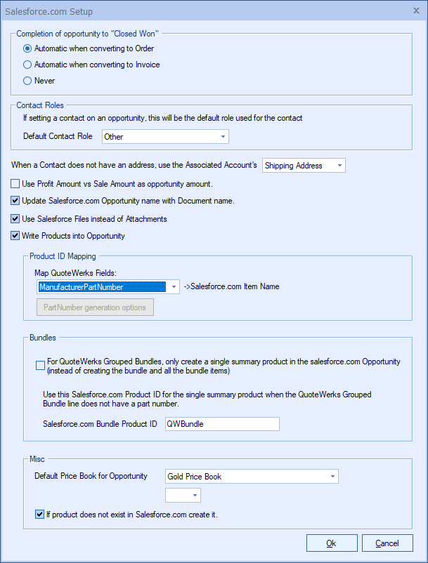 This option will write the QuoteWerks line items into the salesforce.com Opportunity.