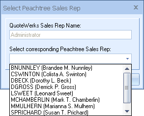 Sales Reps in QuoteWerks need to be associated with their counterparts in Sage 50 (Peachtree).