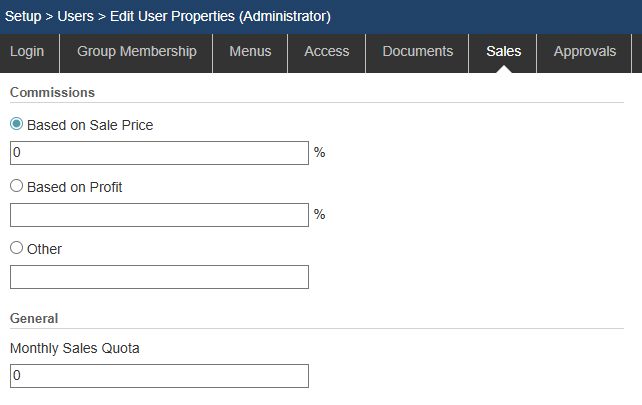 Commission can be calculated in one of 3 ways. It can be based on a percentage of the total sale, based on a percentage of the total profit, or using the “Other” option. This option was designed to be very flexible to allow us to create new commissions in the future for your use.
