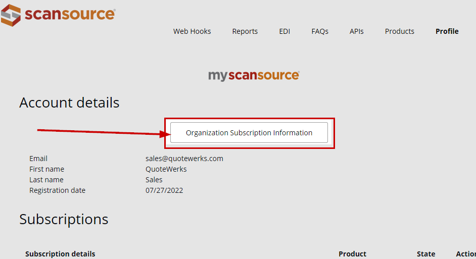 2. This will bring you to your Account Details page.  Here, click Organization Subscription Information