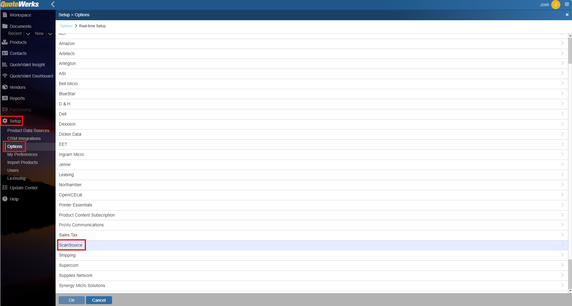 1. To setup ScanSource Real-time pricing and availability navigate to Setup > Options > Real-time Setup and select ScanSource.