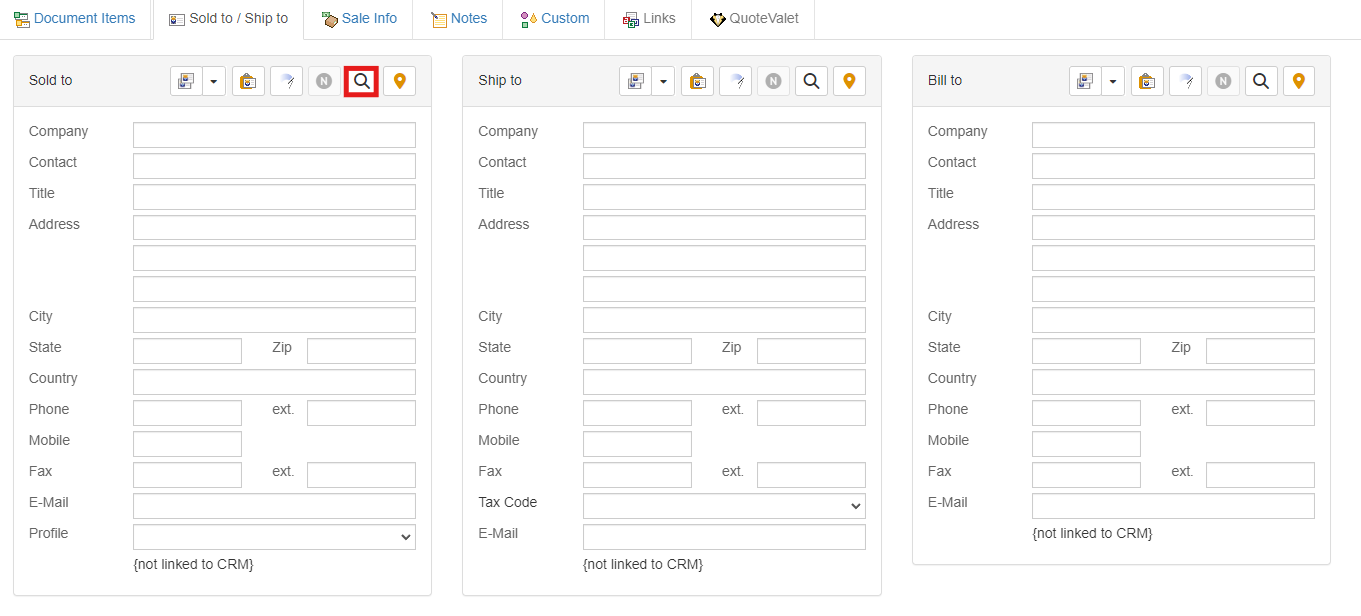 Select the Sold to / Ship to Tab in QuoteWerks and click on the button next to the Sold to, Ship to, or Bill to fields: