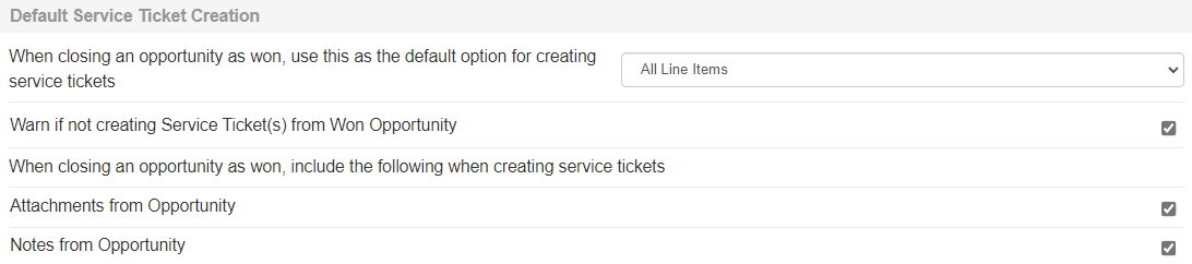 Notes from Opportunity: This setting will include all the Notes from the opportunity on the ticket when QuoteWerks creates the ticket from the Won Opportunity.