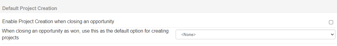 Under this section, you can set defaults for the copying of products and services to new or existing Projects in ConnectWise Manage. These defaults include "All Items", "All Items Except Agreement Items", "Only Phased Groups", or "<None>" when completing an opportunity as Won in QuoteWerks.