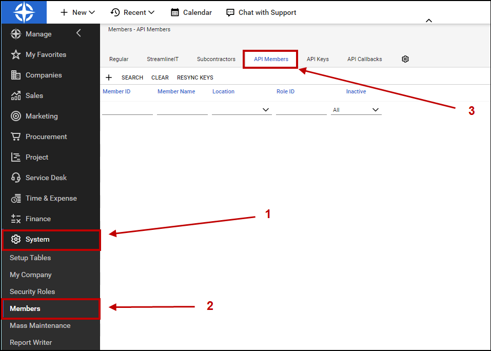 1.Within ConnectWise, select System -> Members -> Then the API Members Tab.