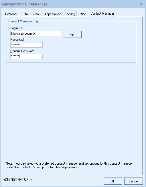 QuoteWerks needs each user's Maximizer login ID and password to log into and integrate with Maximizer CRM Live. These credentials can be specified for the currently logged in user on the Contact Manager Tab of the user’s Tools -> My Preferences menu.