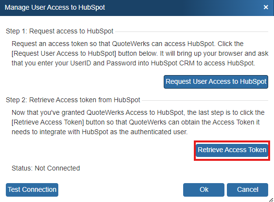 4. Navigate back to QuoteWerks Web and click on "Retrieve Access Token."