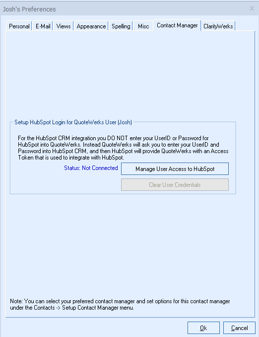 This section takes you through integrating your HubSpot CRM with QuoteWerks. This will allow you to pull HubSpot CRM customer records into sales quotes, create HubSpot CRM deals, link to the HubSpot CRM items list, and much more using a single application: QuoteWerks.