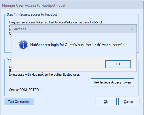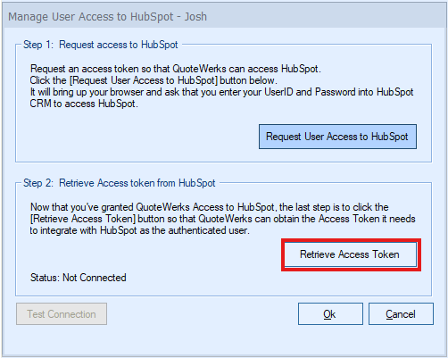 Step 7: Return back to QuoteWerks and click on the [Retrieve Access Token] button.