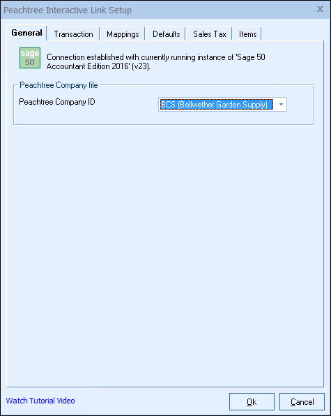 To set up the Sage 50 (Peachtree) link, you can enter the setup window by selecting either the: