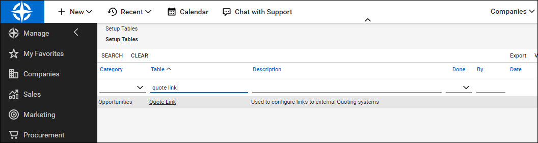 Step 3: Search for “Quote Link” in the Table field: