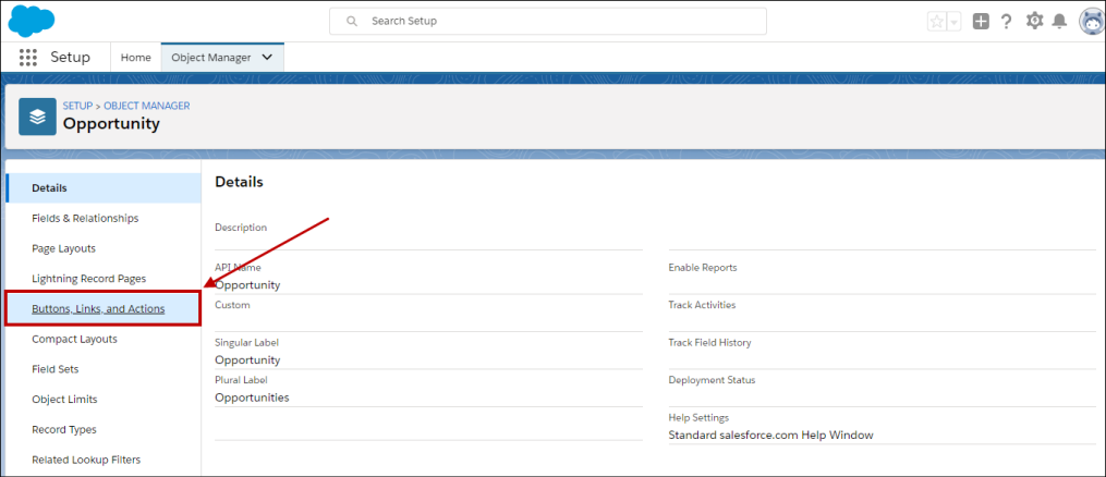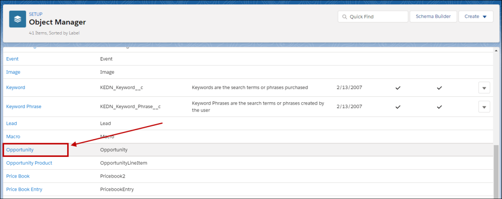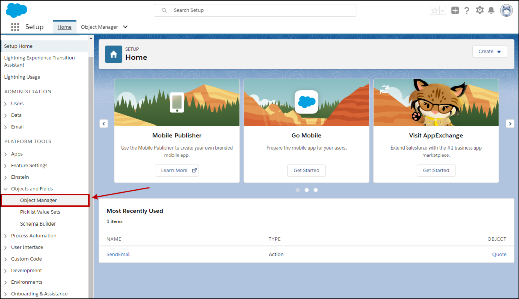 Step 2: Click on the “Objects and Fields” link and then the "Object Manager" link: