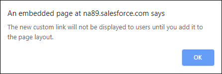 Step 8: Before you can use the web integration link you will need to add it to the Opportunities Tab Page Layout. Salesforce.com will remind you of you this by prompting you with the window below: