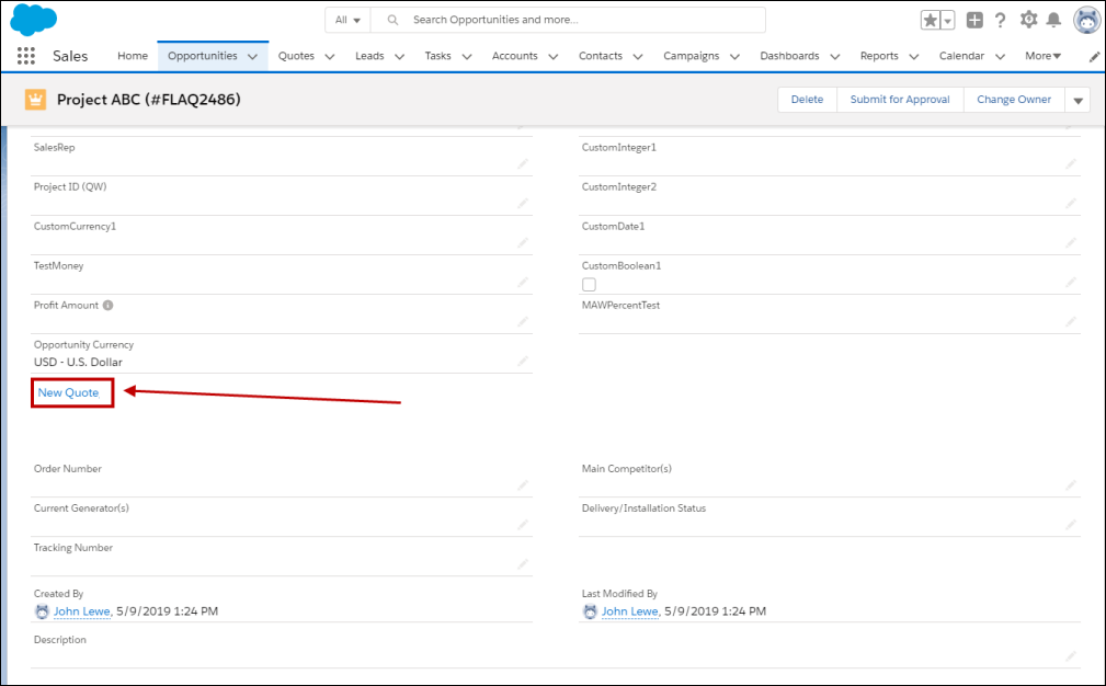 Creating a New Quote from an Existing Salesforce.com Opportunity