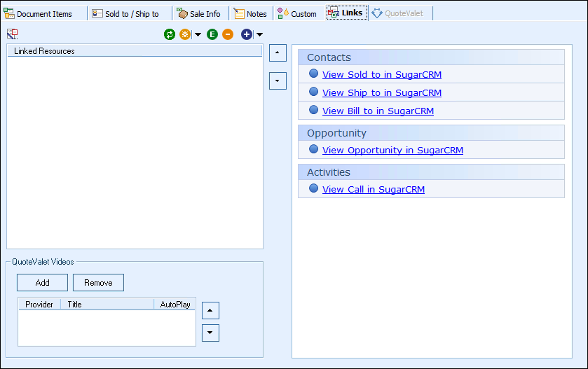 The Auto-Links window creates dynamically generated links from SugarCRM and links to specific details from the QuoteWerks quote. These links are automatically created.