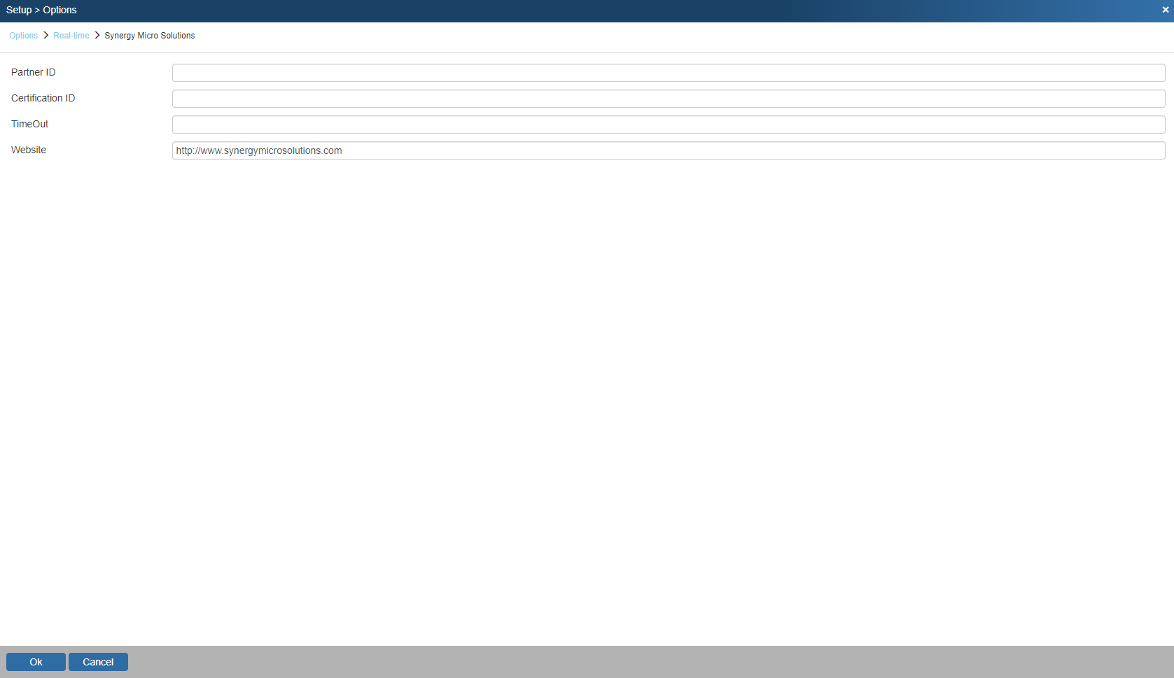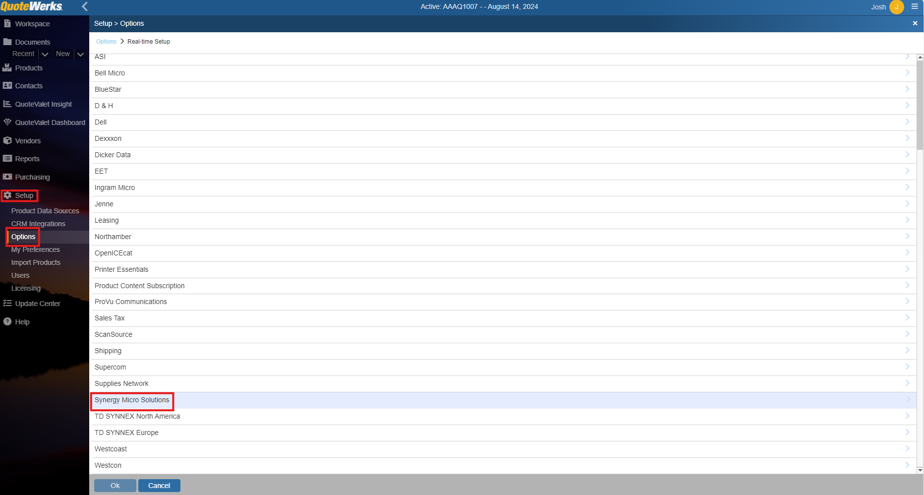 1. To setup Synergy Micro Real-time pricing and availability navigate to Setup > Options > Real-time Setup and select Synergy Micro.