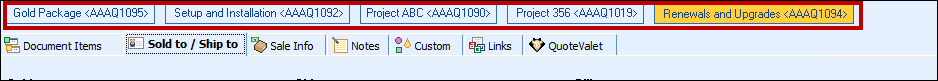 The Documents Bar is located above the QuoteWorkBook (the tabs) and will display a list of documents currently open (default is 5, but the max can be adjusted to 10).