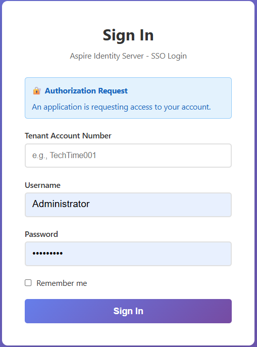 2. Input your Tenant Account Number, Username, and Password.