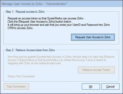 Setup Zoho Login for Current QuoteWerks User "Administrator"
