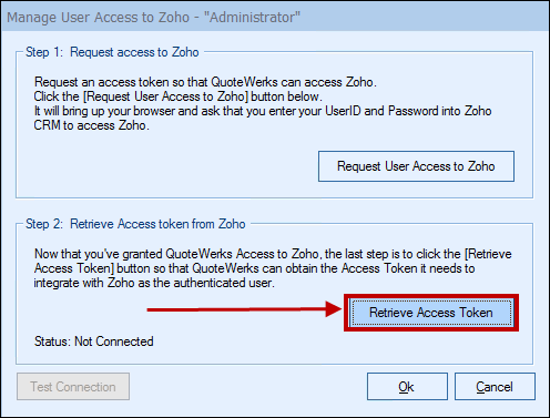 4.Go back to QuoteWerks and click on the [Retrieve Access Token] button.