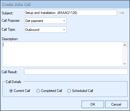 This window will set the subject to the name of the document and then let you set the call purpose, call type, add a description,, and a call result.  You can also choose to mark it as a current, completed, or scheduled call.