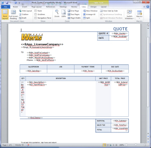 QuoteWerks Microsoft Word Layouts