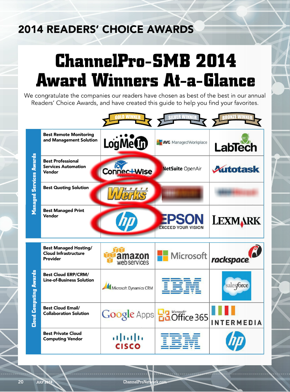 July 2014 issue of ChannelPro Magazine for the full list of winners.