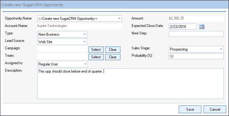 QuoteWerks Creates/Updates Sales Opportunities in SugarCRM