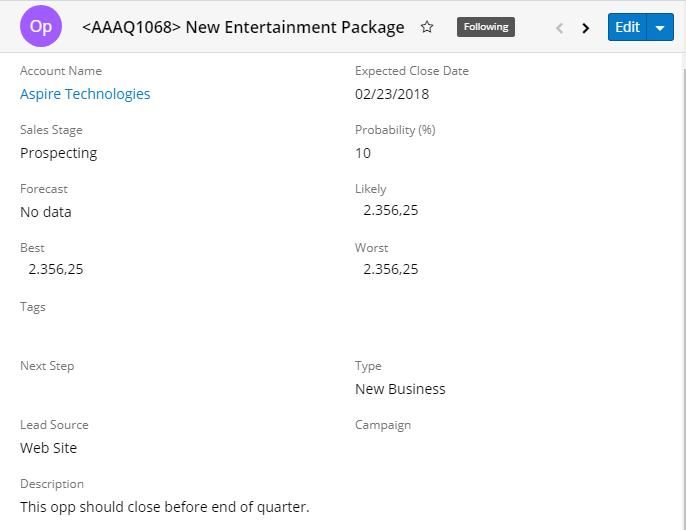 When saving a quote, QuoteWerks automatically creates or updates a Sales Opportunity under the Sales tab for the Contact in SugarCRM. When you are in SugarCRM and select the Sales tab for this contact you will see the sales opportunities and their sale amounts (displayed as an Opportunity Revenue Line Item in SugarCRM Enterprise 7.0 and higher) for each quote you have created for this SugarCRM contact. The Sales Opportunity feature is very useful in determining your projected cash flow.