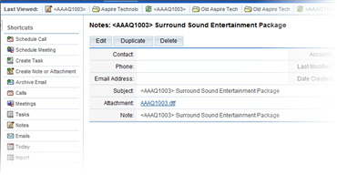 When you are in SugarCRM you will see the Note for each quote that you have created for this contact. When you view the note, you can right click and choose 'Open' to launch QuoteWerks and open that quote. This feature is very useful for organizing and finding your quotes from within SugarCRM.