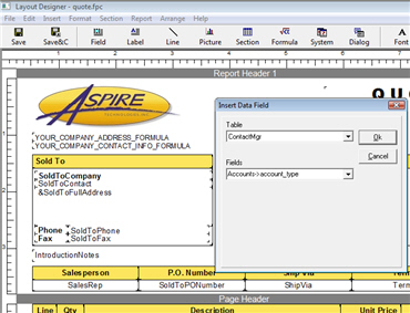 QuoteWerks has a built-in print layout designer that allows you to customize the look of your quote. The print layout designer also allows you to easily insert data fields from SugarCRM into the QuoteWerks print layout. Then, when you print the quote, QuoteWerks will pull data from the SugarCRM contact fields that you inserted into the print layout resulting in a printed quote that includes information from your SugarCRM contact record. This feature is different from the DataLink feature (described above) in that this extra data is pulled from SugarCRM and printed, but not saved with the quote. When you need to save the information pulled from SugarCRM into the quote, you would use the DataLink feature. So, for example, if you are using a field in SugarCRM to store the contact’s assistant’s name, you can insert that SugarCRM field into the print layout so that when the quote is printed, the assistant’s name will be printed on the quote, but not saved with the quote.