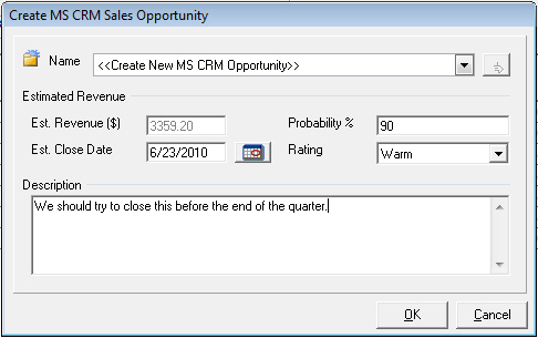 For MS Dynamics CRM 4.0 users, you can now link to existing MS CRM Opportunities rather than having to use a new MS CRM opportunity created by QuoteWerks.
