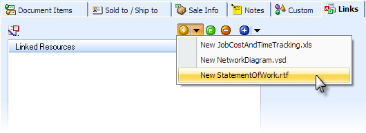 There is now a "Create new linked file using template" feature on the Links tab, from within the quote, you can easily create a copy of any file and QuoteWerks will automatically give it a file name unique to this quote and will add it to the Links tab. So for example if you have a document template file called "JobCostAndTimeTracking.xls", simply clicking on the "New file link from template" button on the Links tab, QuoteWerks will make a copy of this file and name it, for example, "AAAQ1001_JobCostAndTimeTracking.xls". You are not limited to only one Excel file template either. You can setup as many as you want. You can have ones for different job types. You can create templates for any file type, even a text file like "OpenItemsTODOList.txt".